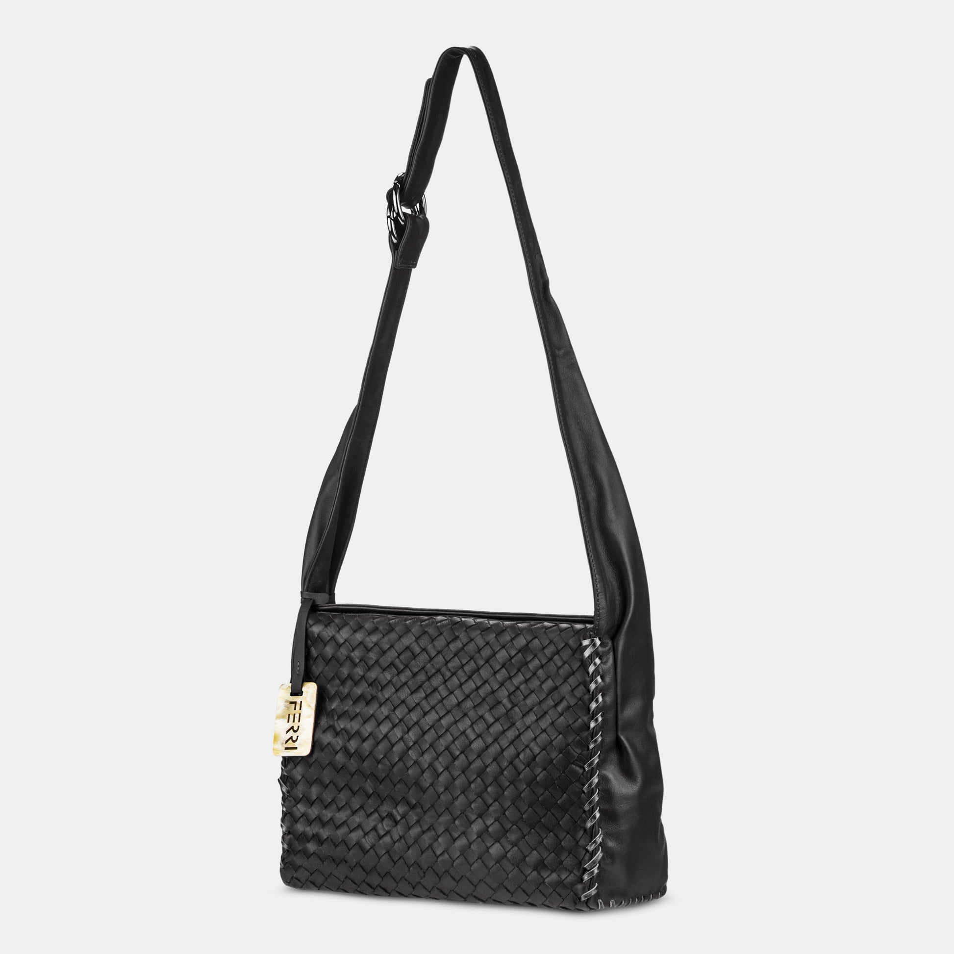 Bolsa Feminina em Tressê de Couro. Tamanho Grande. Alça transversal