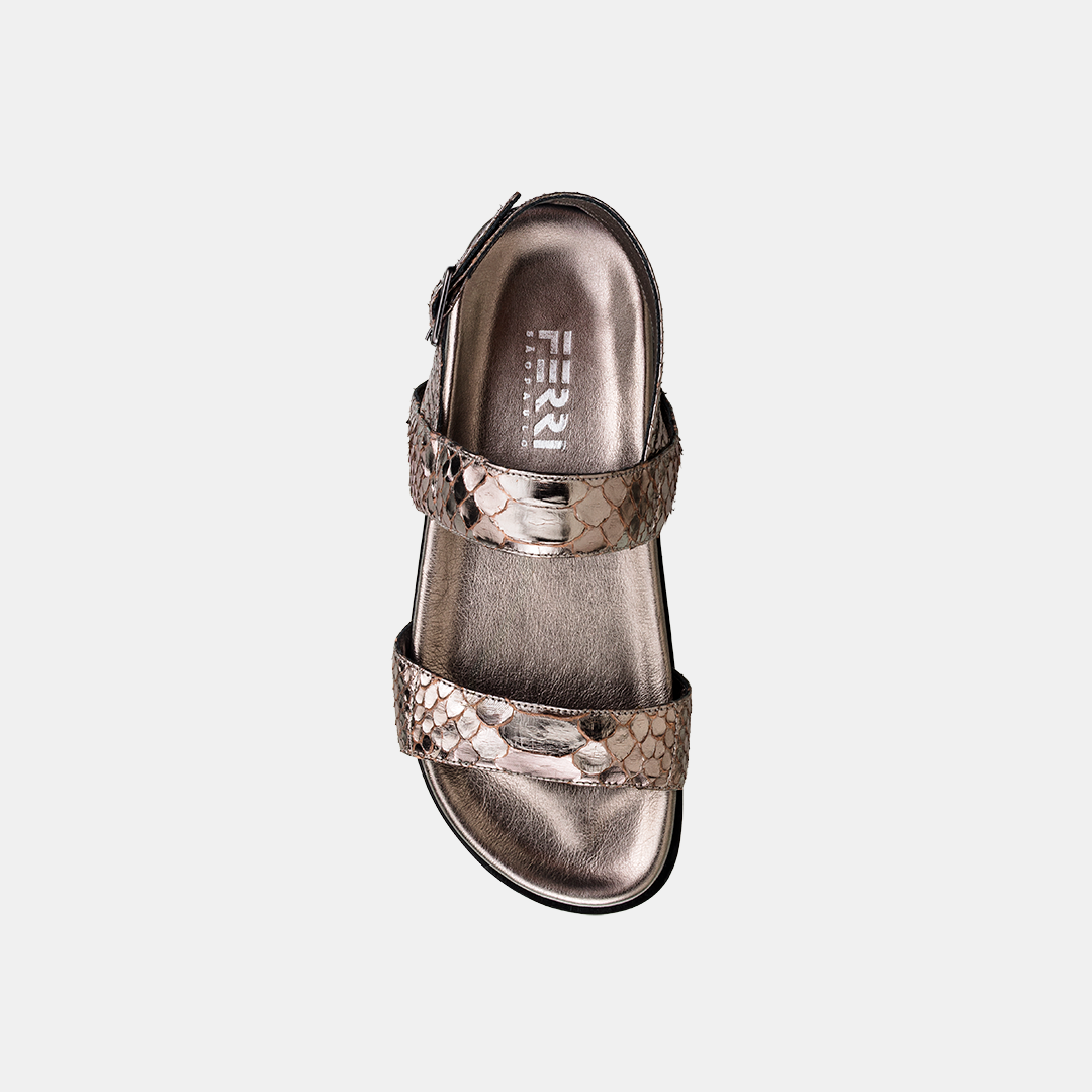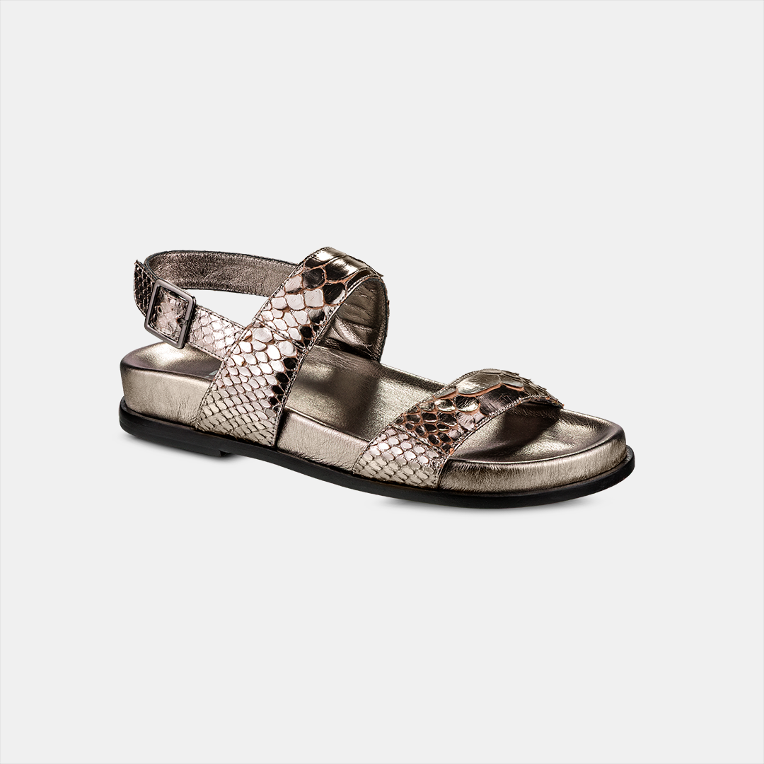 Design Moderno e Conforto definem a nossa Sandália Papete Python, com solado de couro.