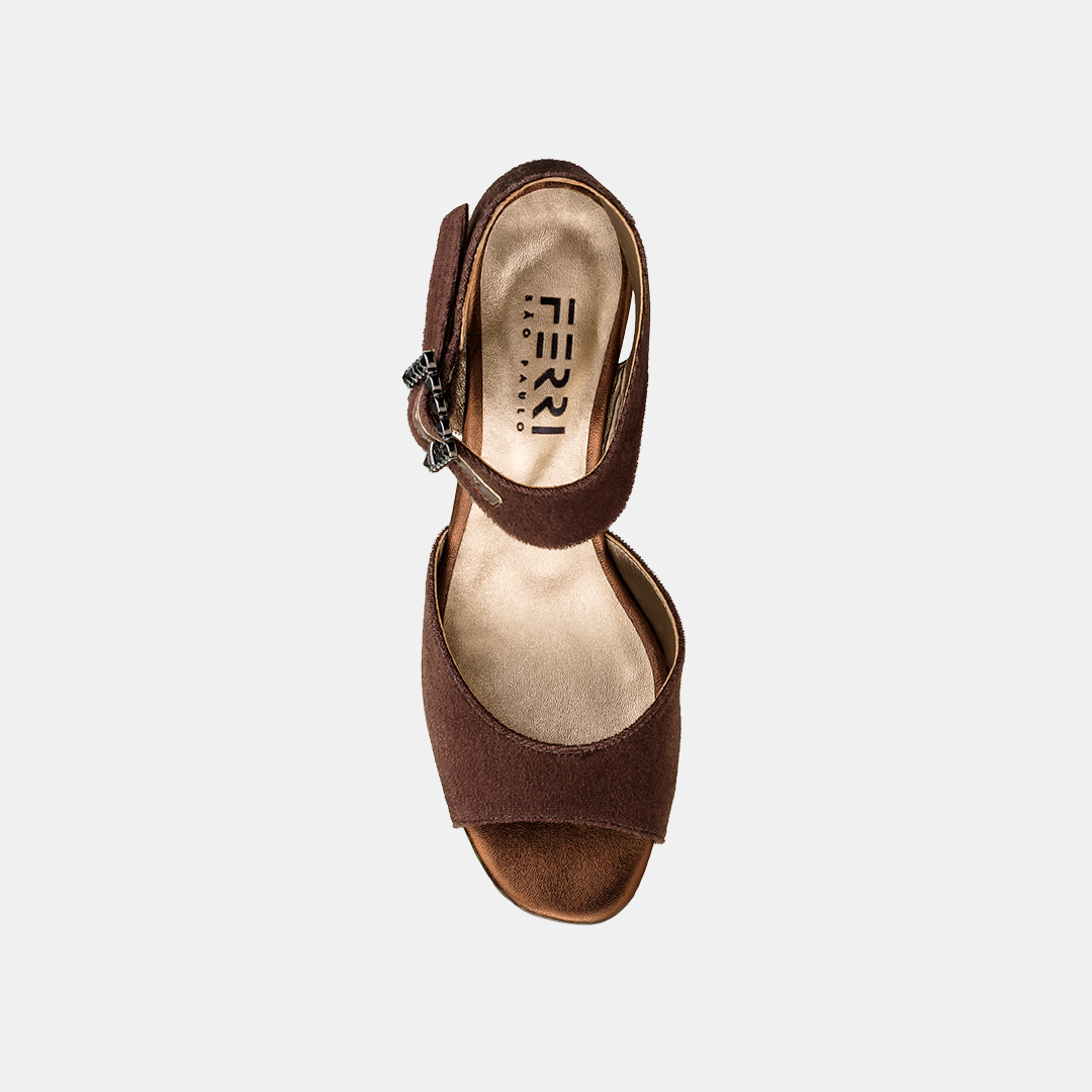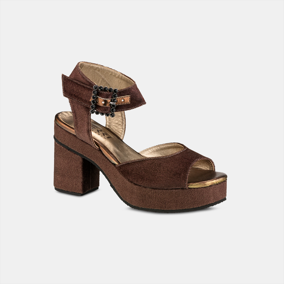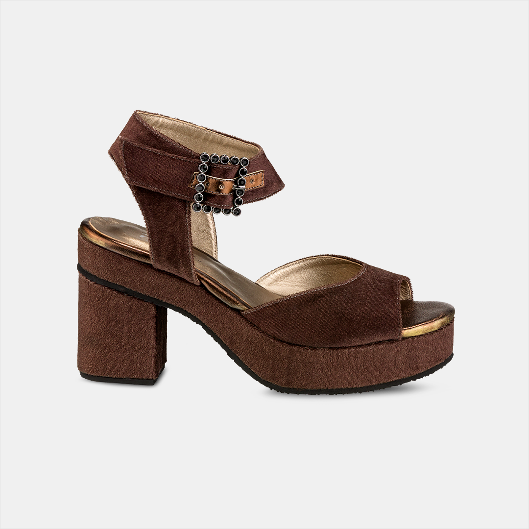 Sandália Plataforma Veludo Marrom