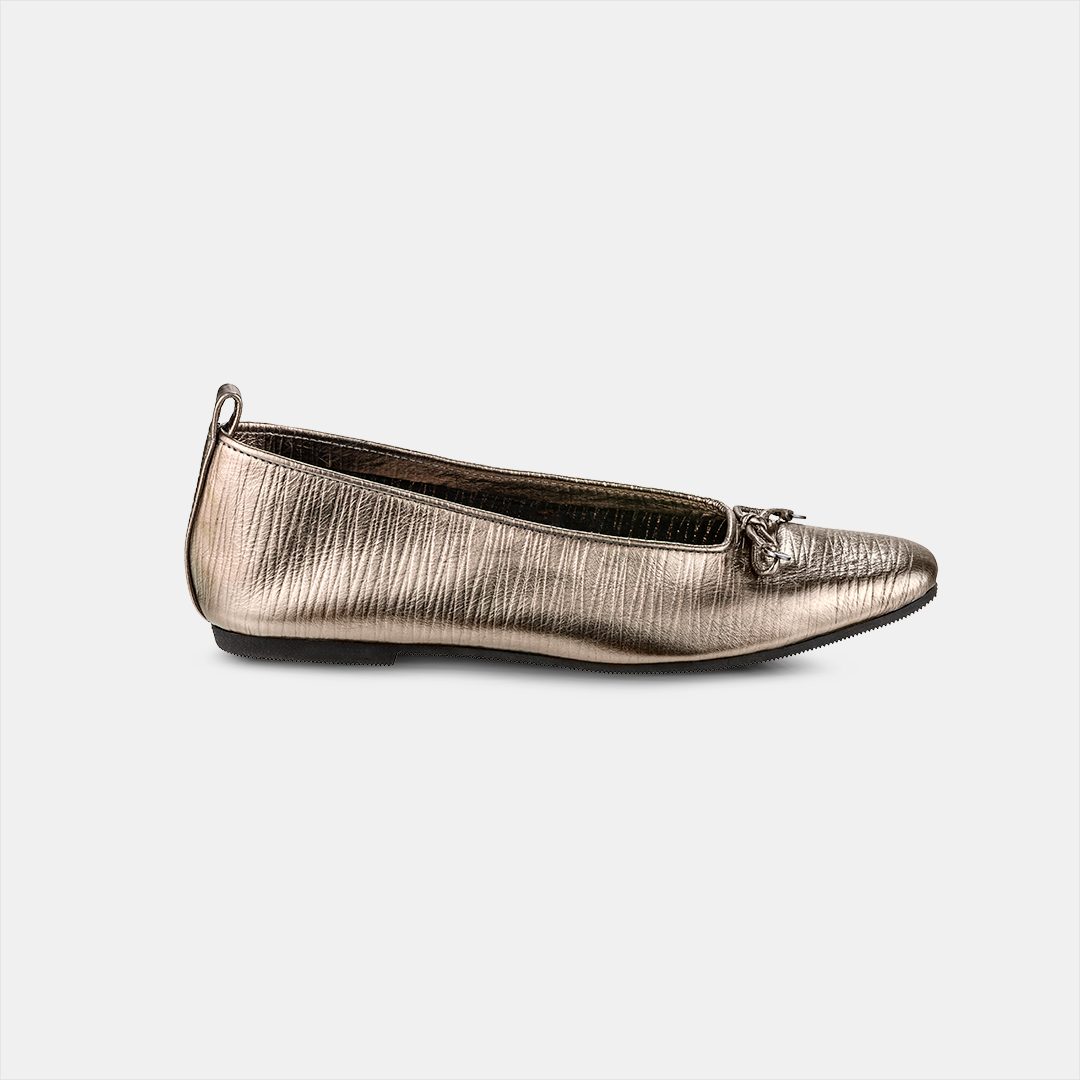 Sapatilha Feminina em Couro com Solado de Borracha. Possui biqueira quadrada. Pingente laço em Marchetaria. Por não possuir forro, nosso modelo confere Conforto Absoluto no calce!